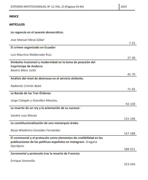 Revista Estudios Institucionales. Revista Internacional de Investigación en Instituciones, Ceremonial y Protocolo. Número 23, diciembre 2025